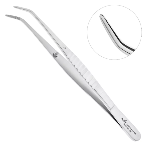 Пинцет College от HLW длиной 15 см применяется для точного захвата и удержания мягких тканей в ротовой полости. Он востребован в стоматологической практике при выполнении хирургических, терапевтических и ортодонтических процедур, обеспечивая деликатную работу в труднодоступных участках.